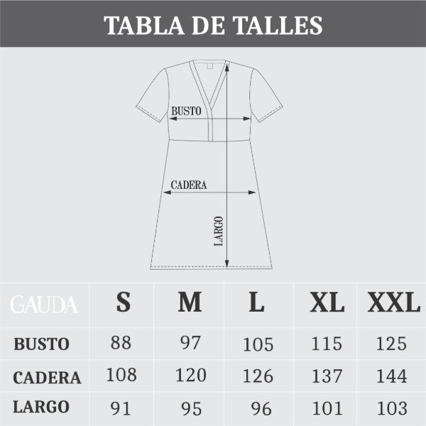 S: Pecho:hasta 88cm Cadera:hasta 108cm Largo: 91cm