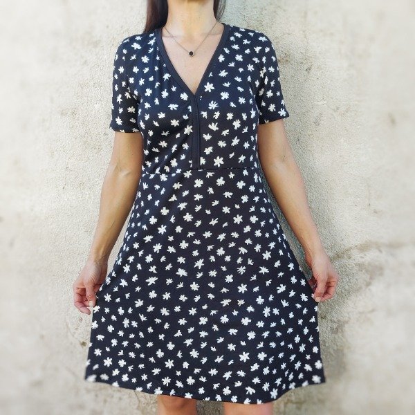 Vestido con corte en la cintura y escote en V, confeccionado en modal soft.